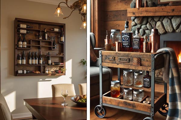 Αν ο χώρος δεν επιτρέπει τη δημιουργία ολόκληρου μπαρ με τραπέζι και σκαμπό, υπάρχουν εξαιρετικές εναλλακτικές. Οι επιτοίχιες ή επιτραπέζιες κάβες κρασιών προσφέρουν οργάνωση των μπουκαλιών σας με κομψότητα, χωρίς να καταλαμβάνουν χώρο. Εναλλακτικά, τα trolley bar είναι πρακτικά και ευέλικτα, αφού διαθέτουν ροδάκια και μπορείτε να τα μετακινείτε εύκολα σε όποιο σημείο θέλετε να απολαύσετε το ποτό σας με την παρέα. Αυτές οι επιλογές δίνουν τη δυνατότητα να έχετε πάντα τα απαραίτητα αξεσουάρ σε άμεση πρόσβαση, χωρίς να χρειάζεται μεγάλος χώρος. Έτσι, κάθε σπίτι μπορεί να αποκτήσει το δικό του μπαράκι.