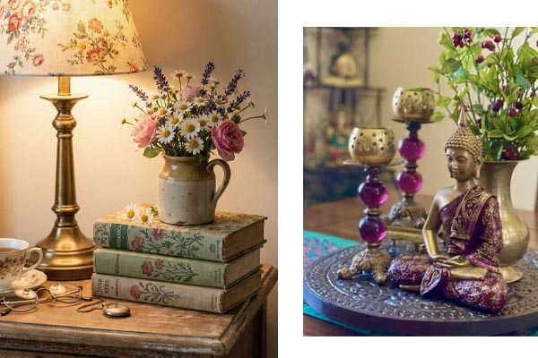 Πριν ξεκινήσετε τη διακόσμηση, αναρωτηθείτε: τι θέλετε να νιώθετε όταν κοιτάτε αυτή την επιφάνεια; Τη διάθεση για περιπέτεια που θα σας προξενήσει ένα ξύλινο καραβάκι; Τη ζεστασιά που θα σας δώσει μια μικρή εστία φωτιάς; Τη θετική ενέργεια που θα σας χαρίσει ένα συμβολικό ενεργειακό αντικείμενο; Επιλέξτε δύο ή τρία βασικά χρώματα που θα λειτουργήσουν ως βάση. Επαναλάβετε υλικά -ξύλο, μέταλλο-, σχήματα -στρογγυλό, τετράγωνο, παραλληλόγραμμο- και μοτίβο για να δημιουργήσετε συνοχή. Όταν το στυλ είναι ξεκάθαρο από την αρχή, η σύνθεση δείχνει φυσική και όχι τυχαία. Έτσι, ο χώρος σας αποκτά ρυθμό και η επιφάνεια μοιάζει “δεμένη”.