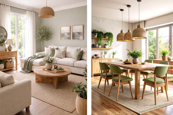 Το modern boho είναι η ιδανική επιλογή για όσους θέλουν έναν χώρο ζεστό και ανεπιτήδευτο, αλλά όχι “φορτωμένο”. Συνδυάζει τη φυσικότητα και την ελευθερία του boho με τη λιτότητα του μοντέρνου. Τα βασικά χαρακτηριστικά του είναι οι γήινοι τόνοι (μπεζ, εκρού, μελί, λαδί), τα φυσικά υλικά όπως το ξύλο ή το rattan και οι διαφορετικές υφές, αλλά με πιο καθαρές γραμμές, απλότητα και ισορροπία.
