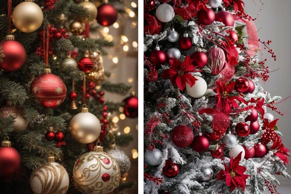 Το κόκκινο αποκτά ιδιαίτερη αίγλη όταν συναντά το χρυσό ή το ασημί. Με χρυσές λεπτομέρειες, το ντεκόρ γίνεται κλασικό και δημιουργεί μια αίσθηση πολυτέλειας σε σαλόνια και τραπεζαρίες. Φανταστείτε κόκκινα στολίδια με χρυσές πινελιές πάνω στο δέντρο, βάζα γεμάτα κόκκινα και χρυσά λουλούδια και κλαδιά ή ένα γιορτινό τραπέζι με κόκκινα κεριά και χρυσά μαχαιροπίρουνα. Το κόκκινο με το ασημί είναι ιδανικό για χώρους με minimal και μοντέρνα αισθητική, ενώ ταιριάζει υπέροχα σε χιονισμένο δέντρο. Ο συνδυασμός αυτός δίνει ισορροπία ανάμεσα στο παραδοσιακό και το μοντέρνο, χαρίζοντας κομψότητα και διακριτική λάμψη.