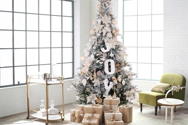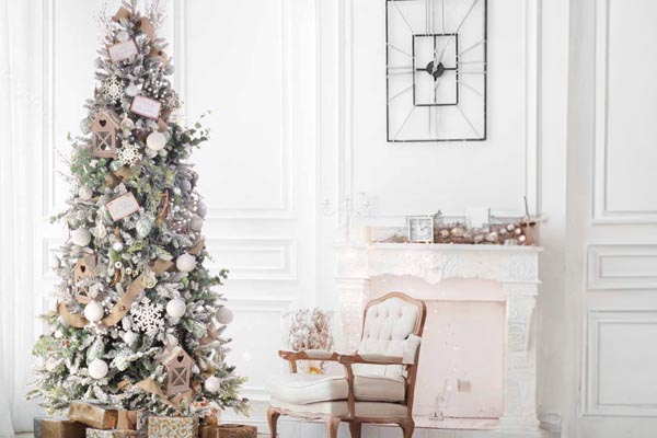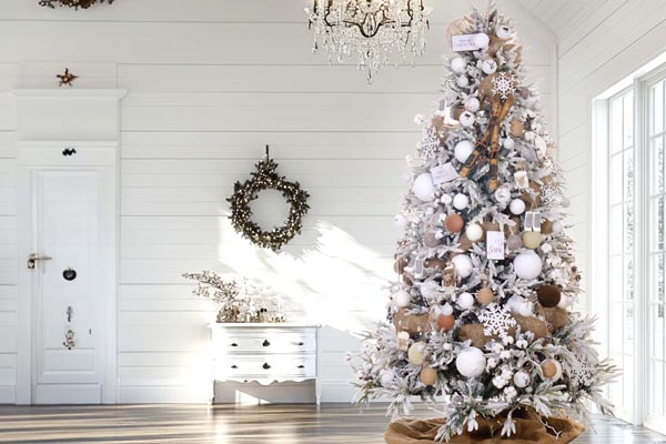 Τίποτα δεν αποπνέει πιο έντονα χειμωνιάτικη ατμόσφαιρα από ένα χιονισμένο Χριστουγεννιάτικο δέντρο, συνδυασμένο με έναν ολόλευκο στολισμό. Στολίστε το δέντρο με λευκές μπάλες και αξεσουάρ, γυάλινα διάφανα στολίδια όπως σταλακτίτες και χιονονιφάδες, και φωτίστε το σύνολο με λαμπάκια ψυχρού λευκού φωτός για να δημιουργήσετε την αίσθηση ενός παγωμένου δάσους. Συμπληρώστε τη διακόσμηση του χώρου με λευκά διακοσμητικά και λουλούδια, χιονισμένες γιρλάντες και στεφάνια, ώστε όλος ο χώρος να αποκτήσει την ίδια αέρινη κομψότητα. Μια τέτοια επιλογή θα χαρίσει στο σπίτι σας την καθαρότητα και την ηρεμία ενός υπέροχου χιονισμένου τοπίου.