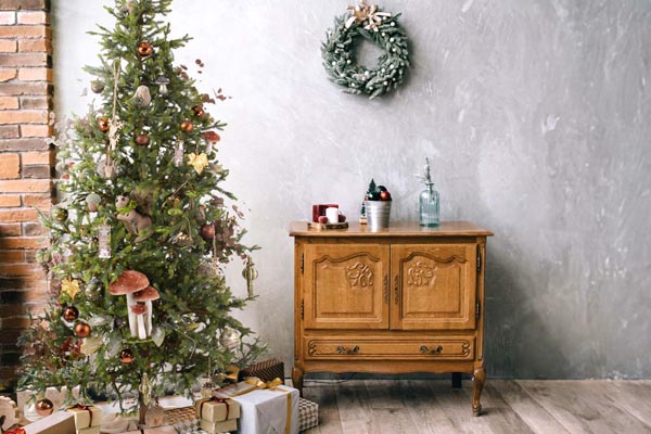 Φέρτε τη μαγεία της φύσης στο σαλόνι σας επιλέγοντας ένα πυκνό καταπράσινο δέντρο στολισμένο με ξύλινα στολίδια, κλαδιά με κόκκινα berries και άλλα διακοσμητικά από φυσικά υλικά. Τοποθετήστε το δέντρο μέσα σε ένα ξύλινο καλάθι ή συδυάστε το με μία ξύλινη βάση ή μια γούνινη ποδιά για να κρύψετε τον μεταλλικό σκελετό. Διακοσμήστε το περβάζι του τζακιού και τον μπουφέ σας με πλούσιες γιρλάντες, στολισμένες με κουκουνάρια, κόκκινους καρπούς, ρόδια ή μήλα. Δημιουργήστε θεματικές γωνιές με λούτρινα ή κεραμικά ζωάκια του δάσους και κασπώ γεμάτα πράσινα φυλλώματα για να ολοκληρώσετε τη rustic ατμόσφαιρα.