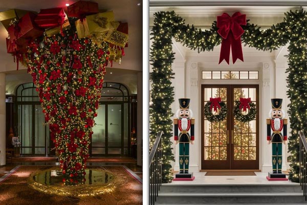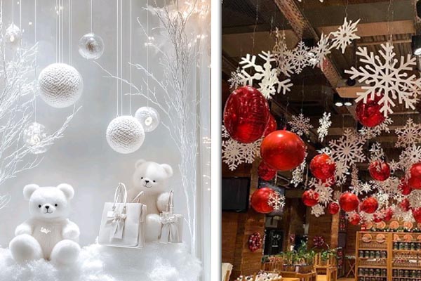 Μεγάλες γιρλάντες που αγκαλιάζουν κάγκελα, παράθυρα και βιτρίνες, εντυπωσιακά στεφάνια που στολίζουν τις πόρτες, δέντρα με ιδιαίτερο σχήμα που εξοικονομούν πολύτιμο χώρο: όλα αυτά προσθέτουν μια νότα παράδοσης και ζεστασιάς στον επαγγελματικό χώρο. Ο επισκέπτης αισθάνεται ότι μπαίνει σε ένα μέρος φιλόξενο, που έχει νοιαστεί για να δημιουργήσει τη σωστή ατμόσφαιρα.
