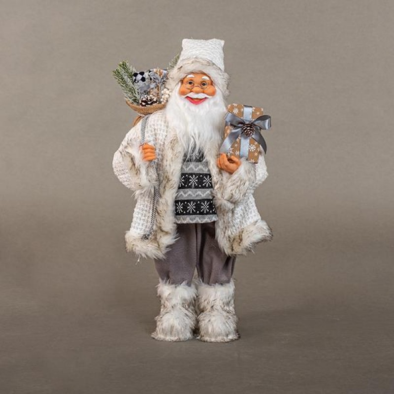 Χριστουγεννιάτικη φιγούρα Άγιου Βασίλη ντυμένος σε λευκή και γκρι απόχρωση 28x20x60 εκ